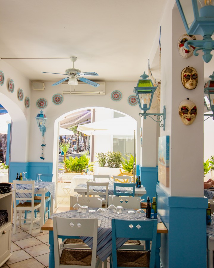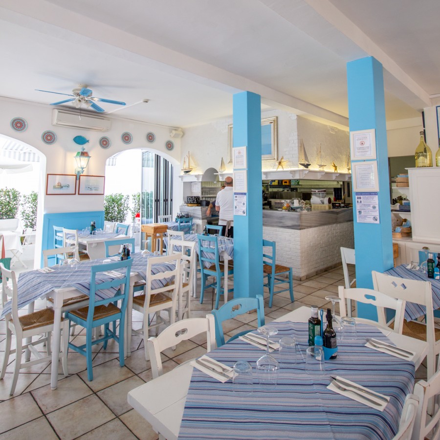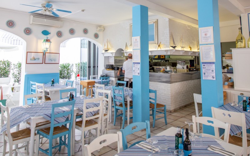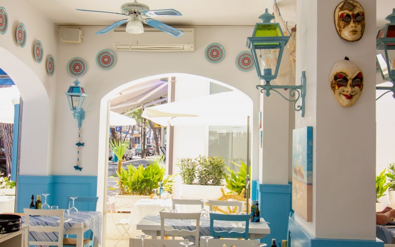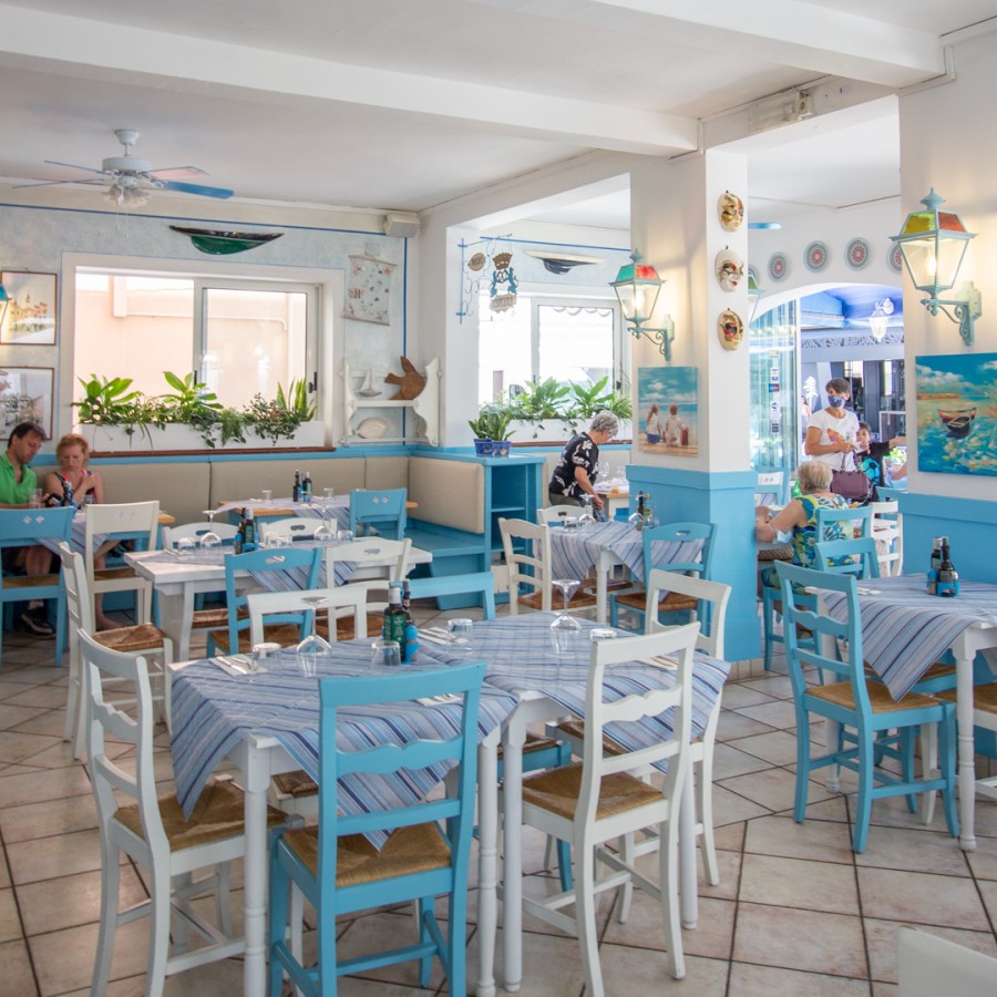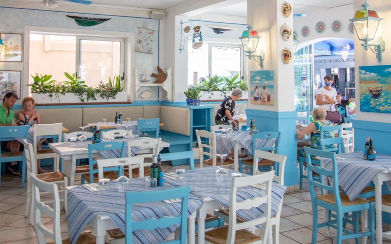 90 posti a sedere, racchiuso in una fresca cornice marinara nei toni del bianco e dell’azzurro e avvolto dal sapore della propria cucina, il ristorantino propone piatti della tradizionale cucina locale e rinomate pizze, il tutto accompagnato da ottimi vini e birre delle migliori etichette, che potrete gustare trascorrendo ore piacevoli e bei momenti in compagnia, osservando il passeggiare dei vacanzieri sull’isola pedonale più lunga d’Europa.